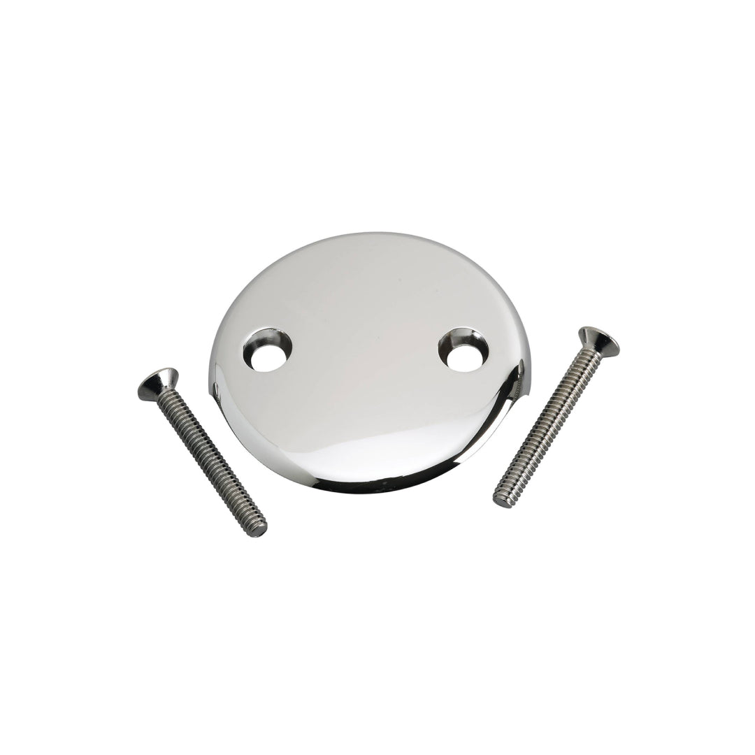 - Replacement of waste and overflow face plate (two hole mount) is Chrome plated finish. Die cast zinc resists corrosion and rust. Includes two (2) chrome plated brass screws (1/4 inch x 2 inch)."