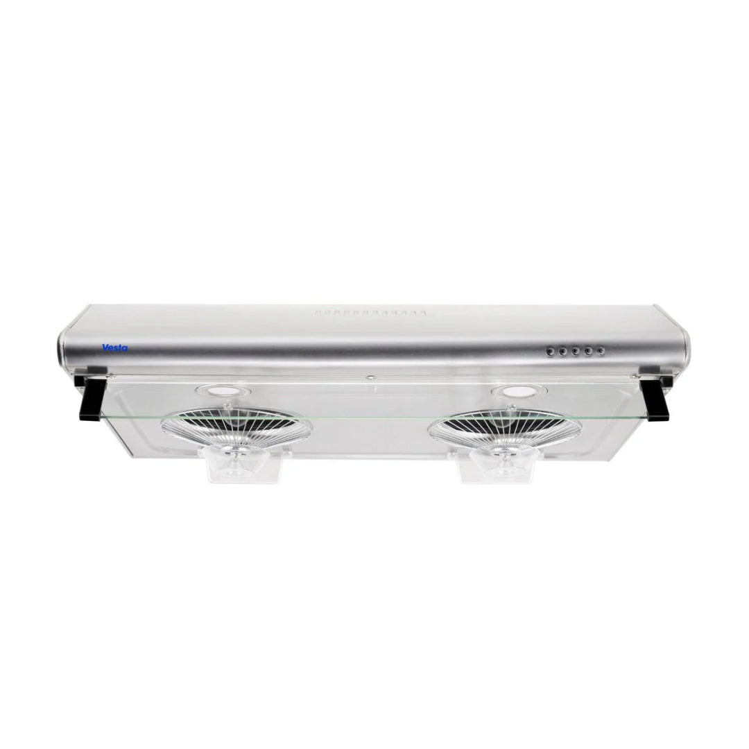 Vesta's Dallas 30-inch white under-cabinet range hood is a durable companion for your kitchen. Featuring a pair of strong motors, mechanical buttons, two round filters, and an incandescent light, this unit will take your cooking experience to a new level.