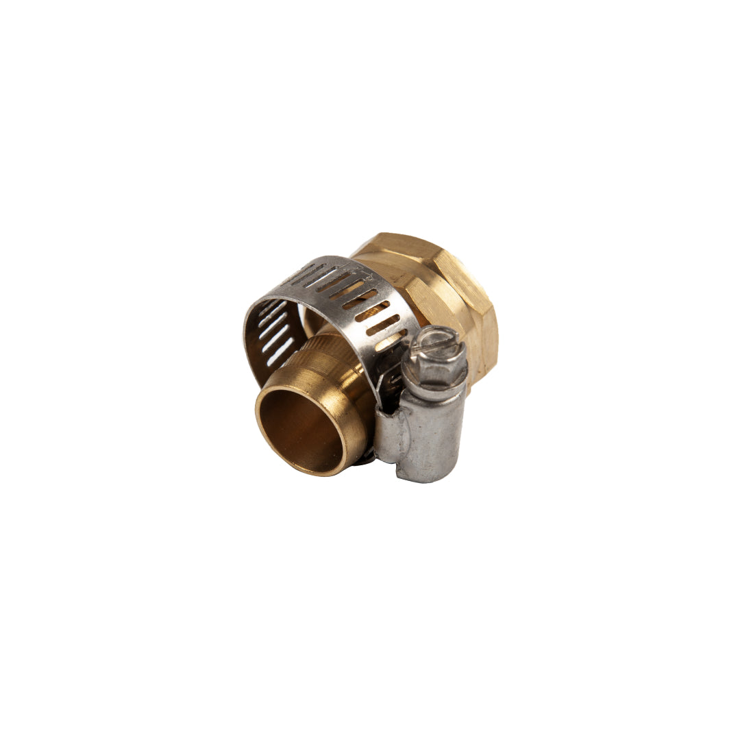 - Brass garden hose mender 3/4in female w/ ss clamp.