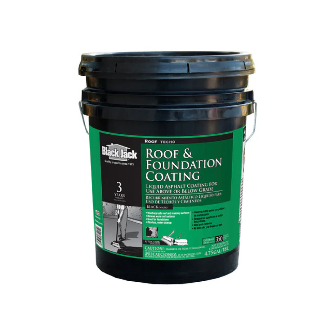 Black Jack® Roof & Foundation Coating is a liquid applied, asphalt based coating. It is designed to penetrate and seal worn roof surfaces, foundation block walls, above or below grade and other masonry roof surfaces. Coating will weatherproof and help seal surfaces. Can also be used to seal and protect underground wood footings and metal surfaces. Dries black in color.
