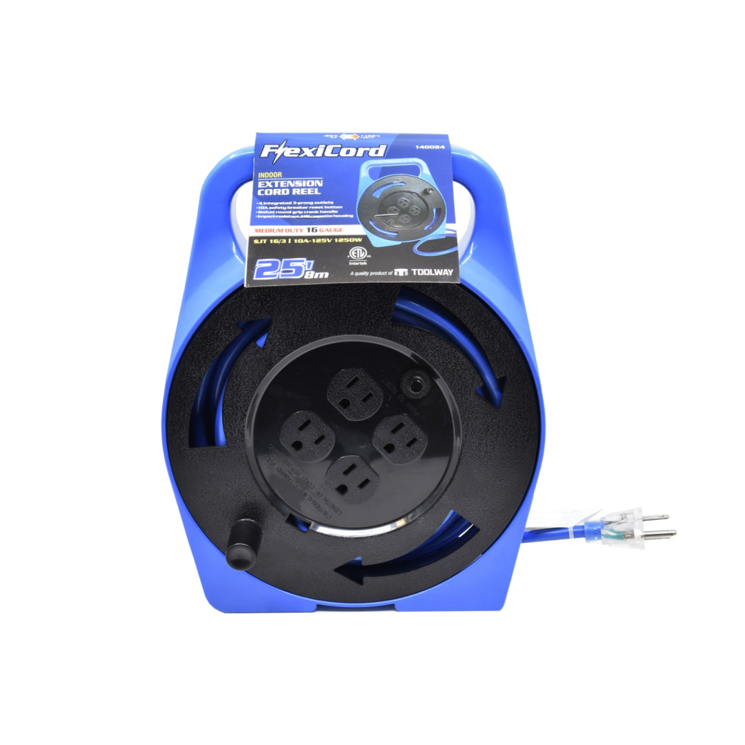 Extension Cord Indoor In Plastic Reel SJT 16/3 4-Tap GFI Blue 25ft