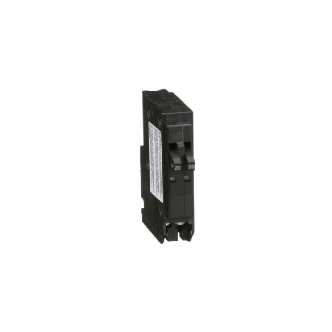 Tandem mini circuit breaker, 2 x 1 pole at 20A, 120/240VAC, 10kA, plug in - QO2020