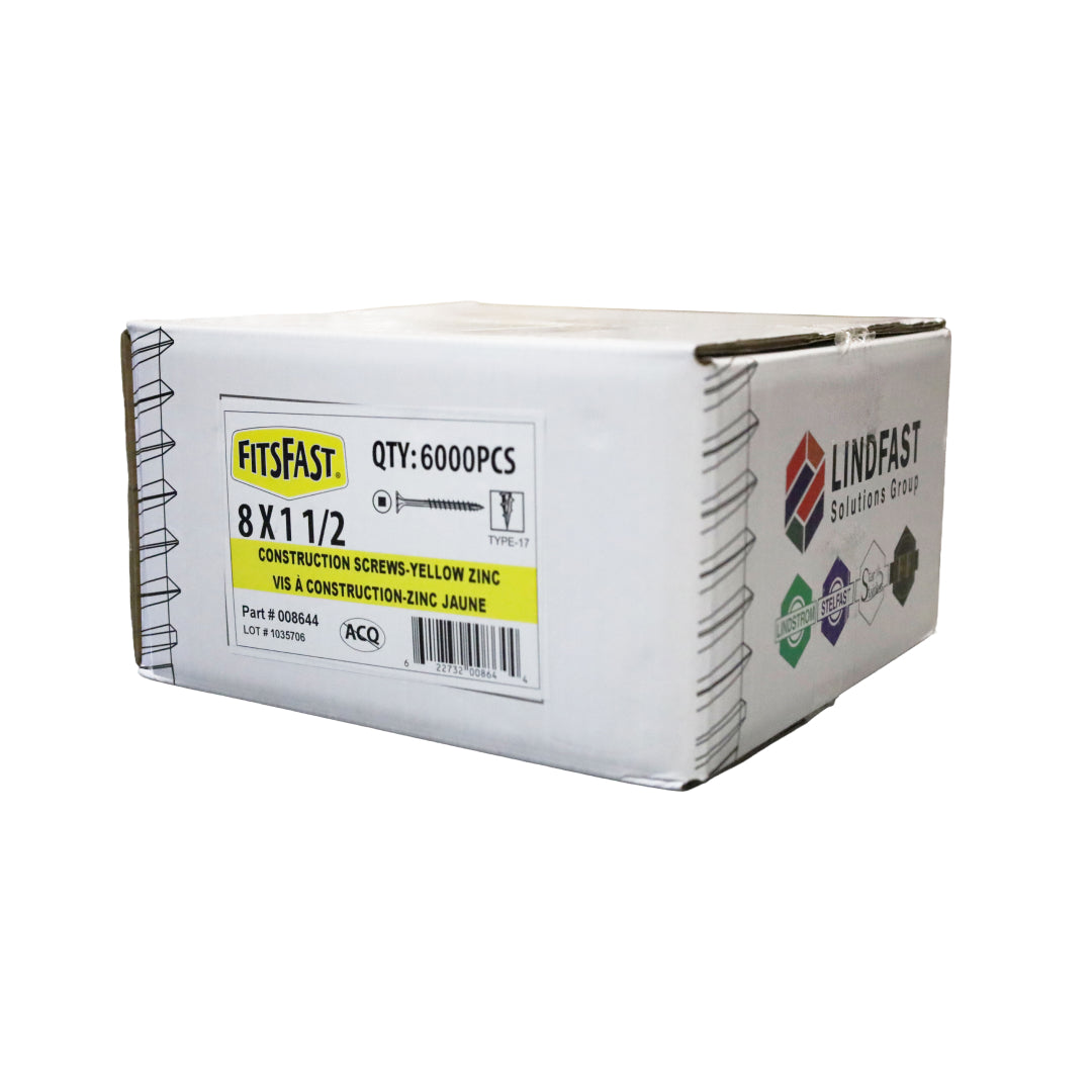 8 x 1-1/2 Construction Screws Yellow Zinc Type 17 6000pcs
