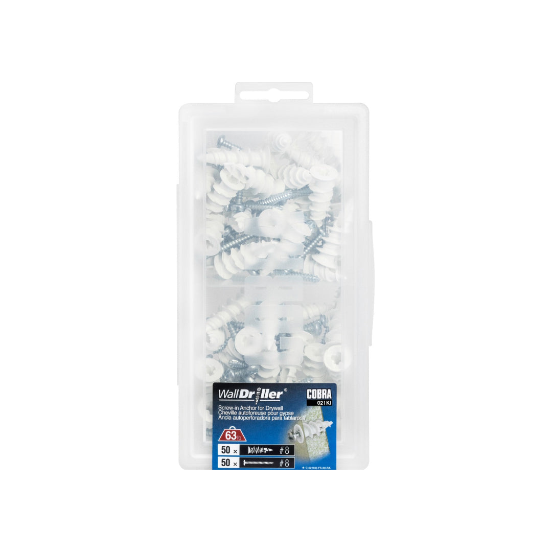 The WallDriller® is designed to offer the maximum holding power in drywall material. Its fine centered point helps guide the anchor into the wall with flawless precision. A sharp profile thread cuts deeply into the hole without damaging the drywall, ensuring maximum holding power and stability. The sharp cutting edge reduces the force required to cut the material, making it a self-drilling anchor without pre-drilling. Available in #6 and #8L, in both nylon and zinc.