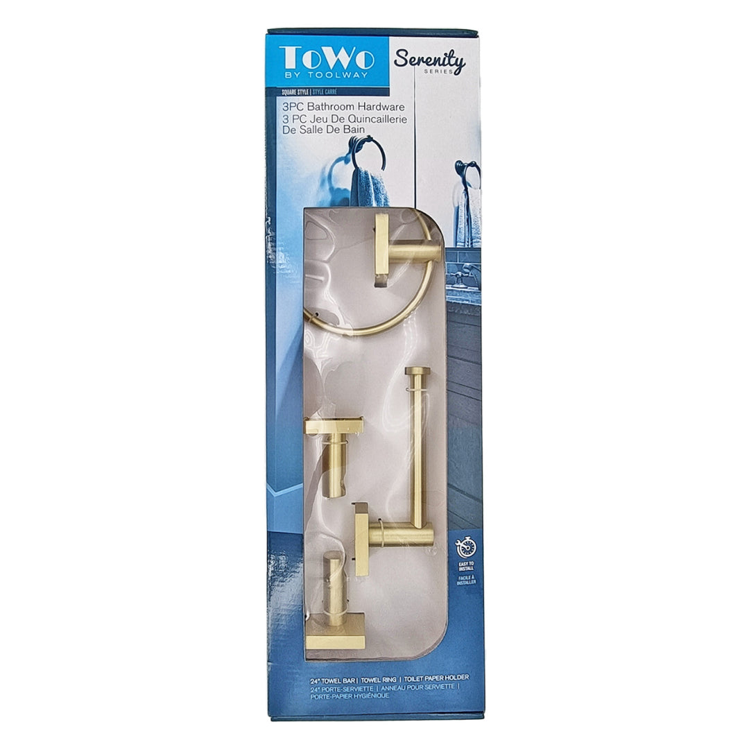 3PC Serenity Bathroom Hardware Wallmount Set Brushed Gold