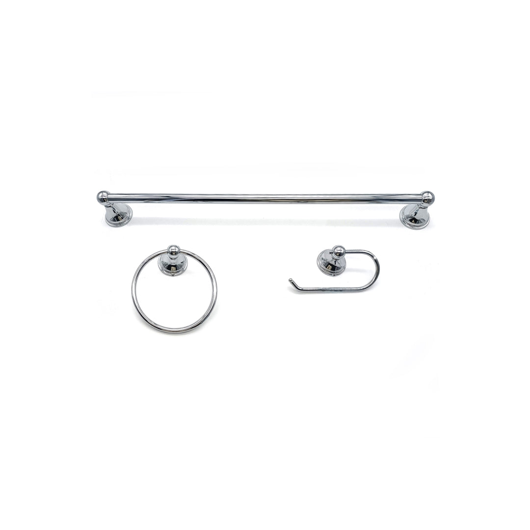 - Set includes: 24 in towel bar, towel ring and toilet paper holder.