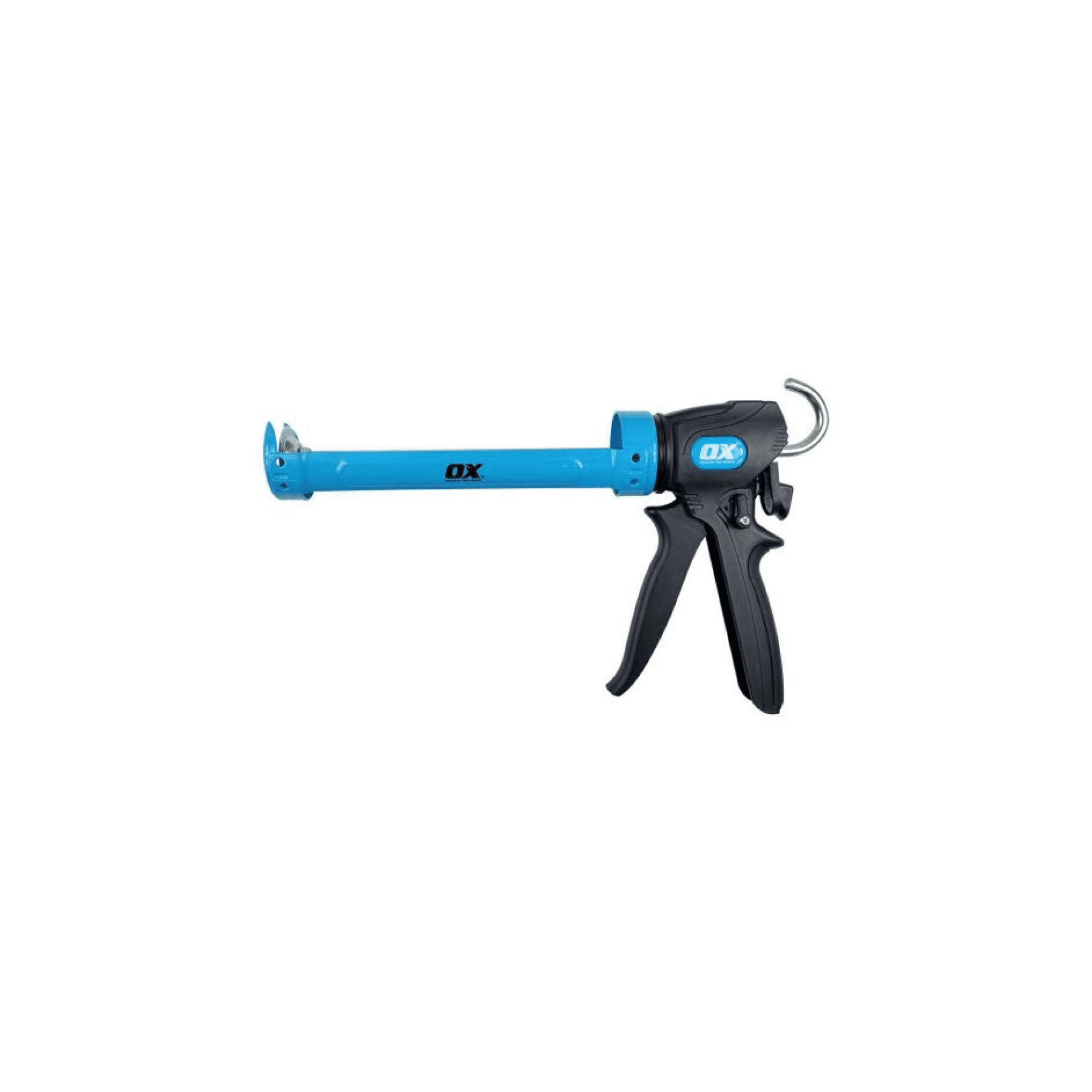 - With 4 different integrated patented systems the OX Pro Dual Thrust Caulk Gun is designed to be comfortable, practical, and user-friendly