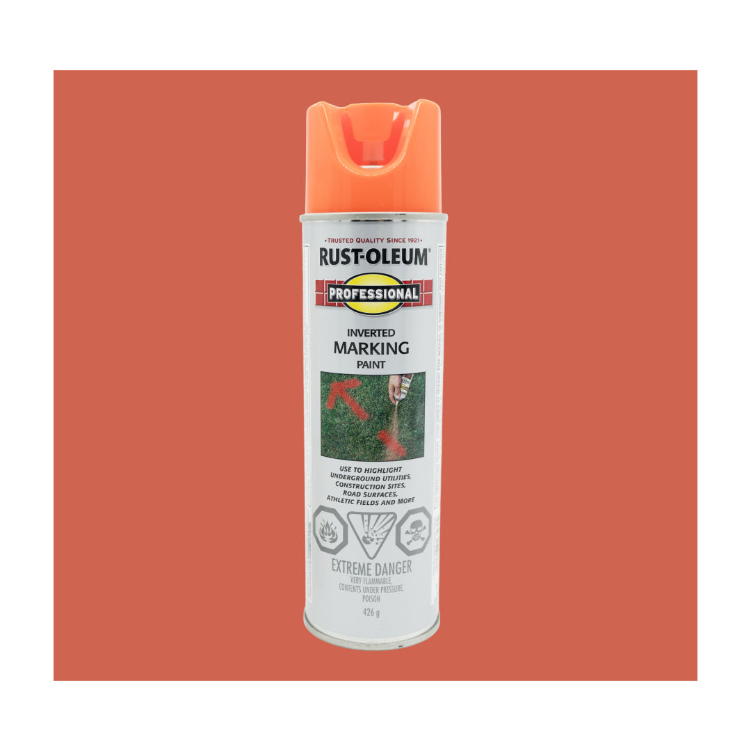 Mark up to 800 linear feet per can with Rust-Oleum® Professional 2X Distance Inverted Marking Paint Spray. This no-mess aerosol produces easy-to-follow marks—great for underground utilities, athletic fields, landscaping and more. Sprays upside-down for easy use.