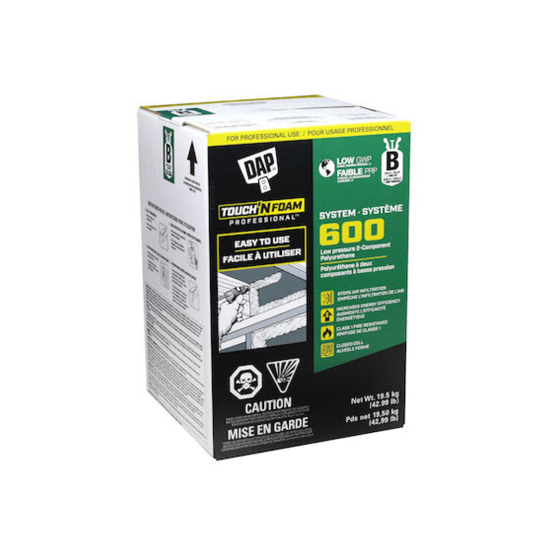 Discover the power of the TOUCH 'N FOAM® Professional Spray Foam Kit - 600 for unbeatable air sealing and energy efficiency. This low-pressure, closed-cell, medium-density polyurethane foam expands quickly to fill cavities, cracks, and gaps, improving heating and cooling efficiency while lowering energy costs. Formulated to meet low GWP requirements, it offers an eco-friendly solution without sacrificing performance. With a Class A Fire-Resistant rating and compliance with ICC-ES ESR 3052 and CCMC criteria, it’s ideal for long-lasting air sealing. Ready to use and easy to transport, the disposable pressurized cylinders dispense foam without the need for external air compressors or equipment. The foam bonds to most common building materials, resists moisture, mould, and mildew, and features a low-odour application. It dries in just 60 seconds and won’t shrink or settle, providing a durable, airtight seal that increases structural strength.