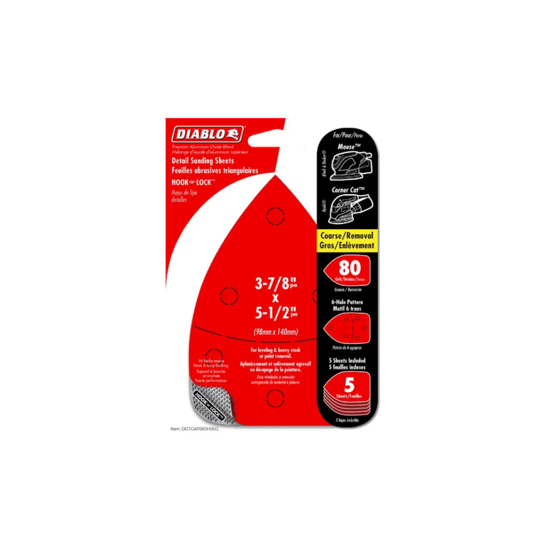 Diablo's premium CAT/Mouse Hook & Lock™ Detail Sanding Sheets include breakthrough innovations that improve performance, extend sanding life and increase productivity. These sanding sheets are designed for use in Mouse Black and Decker and Corner Cat Ryobi sanders and are ideal for all types of wood, metal and plastics.