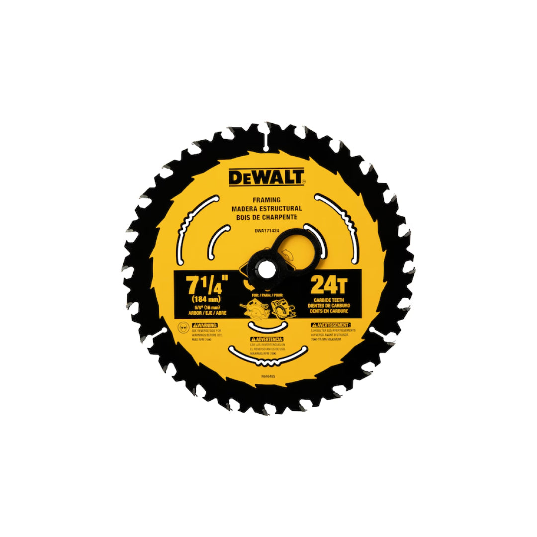 DEWALT Saw Blades are ideal for any wood-cutting application. The exclusive, patent-pending ToughTrack™ tooth design, on our framing & ripping blades, is engineered to deliver straight, accurate cuts over the life of the blade. Patented Body Slots reduce vibration, which works with the blade's thin kerf design to deliver exceptional user feel. High-Density Tungsten Carbide teeth are tough, wear-resistant, and provide long life. The reinforced shoulder is designed for strength & durability by providing impact resistance, especially in nail-embedded wood. These blades come with ToughCoat™ anti-stick coating to reduce friction and gumming. Optimized for use on both corded and cordless circular saws.