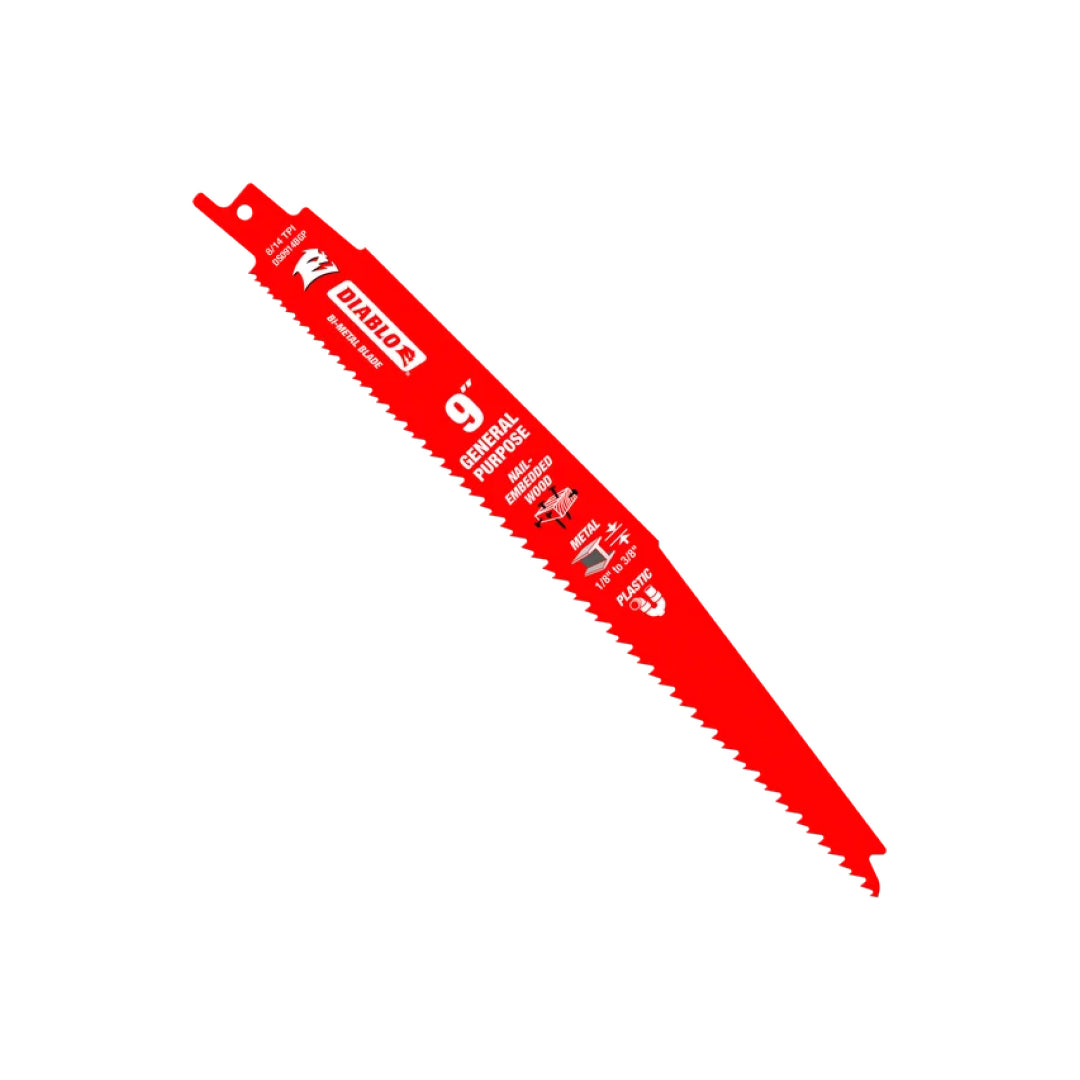 Diablo's Bi-Metal Reciprocating Saw Blades for General Purpose Cuts are specifically designed for maximum performance in wood, nail-embedded wood, metal and plastic applications. These high-performance blades feature bi-metal technology that delivers up to 5X longer life compared to standard blades on the market. Diablo's patented variable tooth technology provides faster cuts with less vibration.