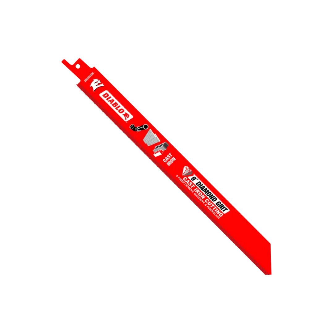 Diablo's Diamond Grit Reciprocating Saw Blade for Cast Iron provides long blade life and maximum performance in cast iron, fiber cement, masonry and fiberglass. Thanks to a reinforced blade backing, these blades allow a straight and accurate cut in extreme materials and provide 6X the blade life of standard blades on the market. Diablo's Perma-SHIELD reduces material buildup and prevents gumming and corrosion. A thin kerf design also provides fast cuts for increased productivity.
