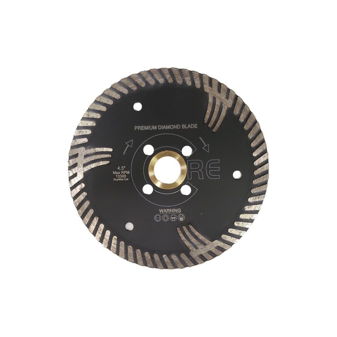 The QHP Series by CORE has firmly established itself as a cornerstone product in the diamond tools industry, specifically crafted for precision cutting in granite and engineered stones. Widely embraced in stone fabrication shops, this first-generation blade features a robust turbo-style segment with diamond side protection, known as Piranha Teeth, ensuring optimal cutting efficiency. The 4.5", 5", and 6" versions of the QHP Series come equipped with a practical 4-hole flange adapter, allowing for a secure attachment to commonly used tools in the industry. Notably, the 7" and 8" versions showcase a diamond knockout arbor, enhancing the blade's versatility for various cutting applications and enabling it to seamlessly fit onto a Skil Saw, providing professionals with flexibility in tool usage.
