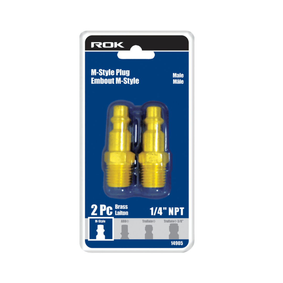 1/4" Male Plug Industrial M-style Brass 2-Pack
