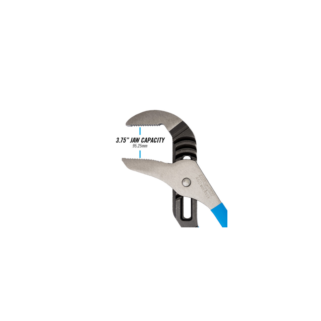 CHANNELLOCK® Straight Jaw Tongue & Groove Pliers are built to last with a PERMALOCK® fastener to eliminate nut and bolt failure, patented reinforcing edge to minimize stress breakage and laser-hardened teeth to provide a better, longer lasting grip. CHANNELLOCK® Straight Jaw Tongue & Groove Pliers are made in USA and forged from high carbon U.S. steel that is specially coated for ultimate rust prevention.
