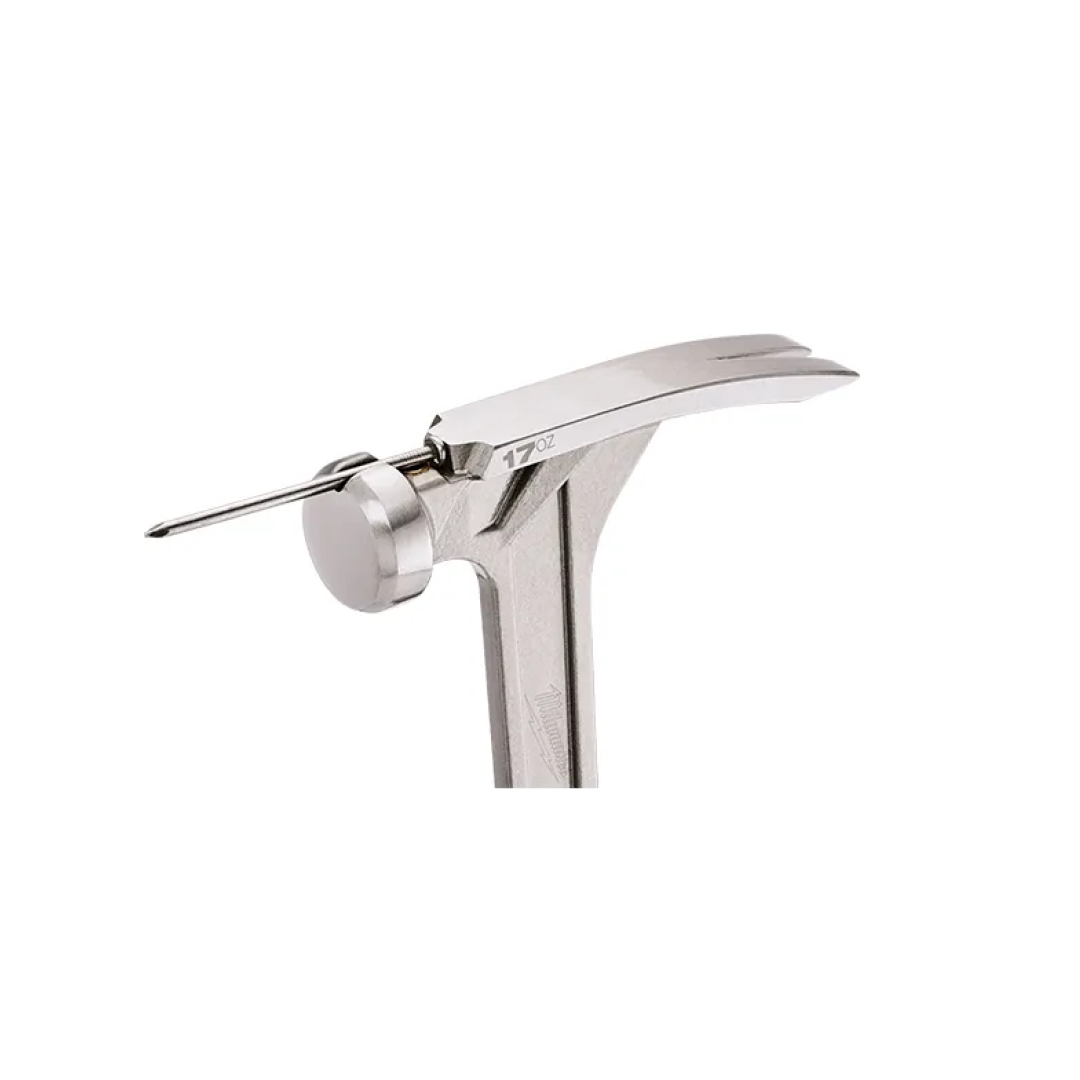 The Milwaukee® 17oz Smooth Face Hammer is designed from the ground-up to address common user frustrations with hammers currently available on the market, providing superior driving performance with up to 10X less peak vibration. Constructed with a steel I-Beam Handle, the new hammer is designed to withstand the harshest jobsite use and a SHOCKSHIELD™ grip provides best-in-class grip durability and vibration reduction. For added user benefit, the hammer features an anti-ring claw design which reduces noise and ringing when striking hardened objects.