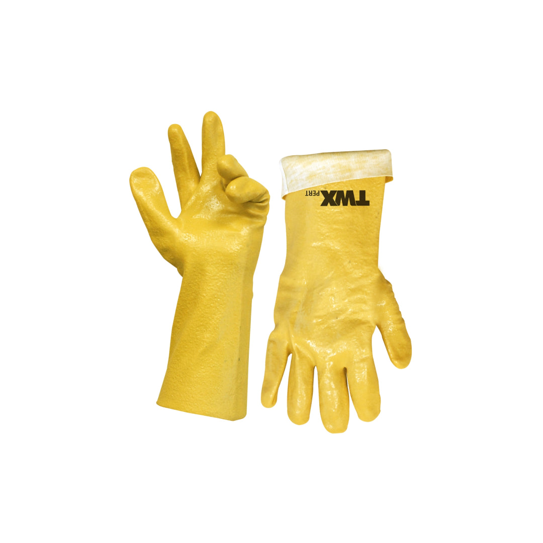 1dz. PVC Chemical Gloves Yellow 14in Cotton Flock Lining