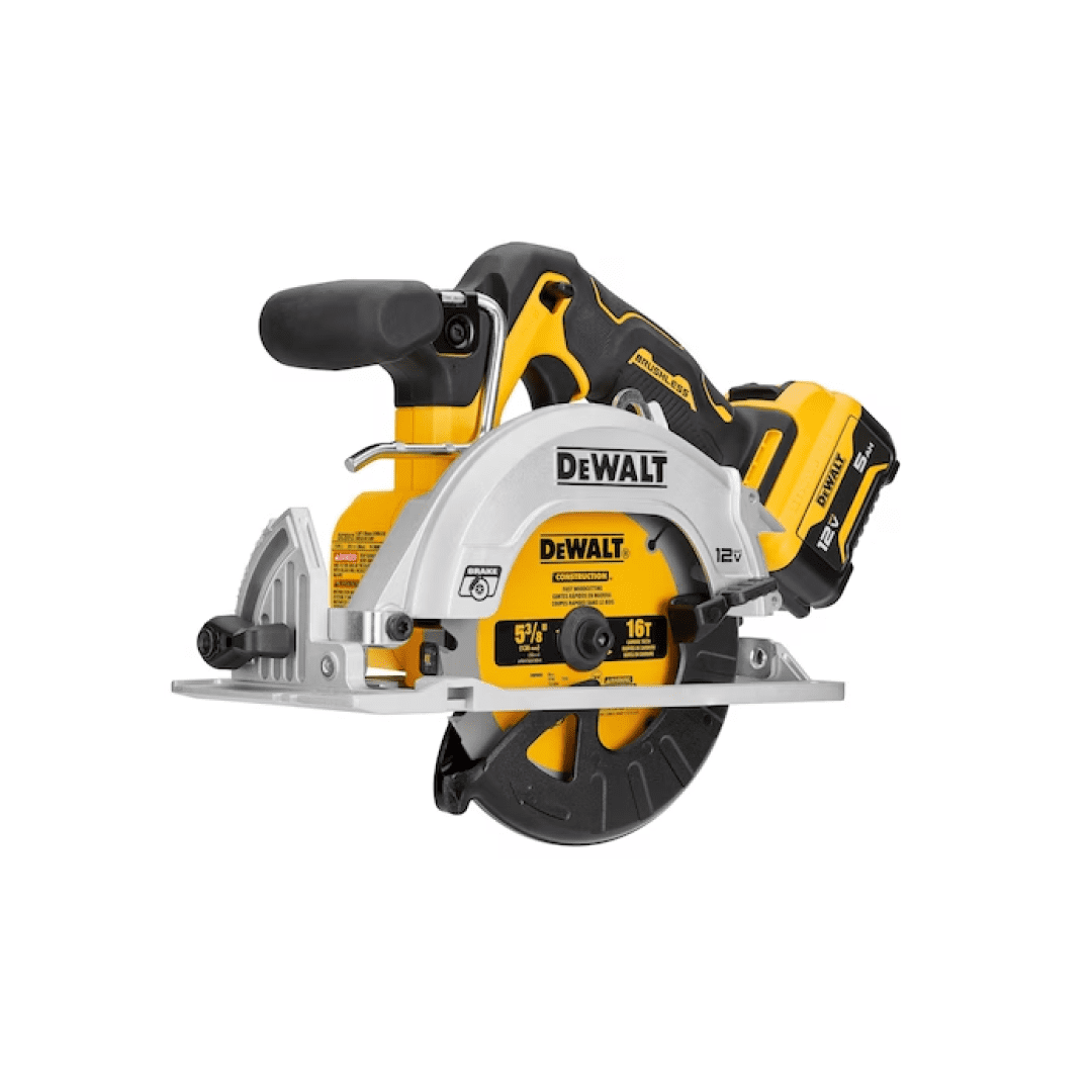 - Includes: DCS512 5-3/8 in. Circular Saw, 5-3/8 in. Saw Blade, Blade Change Wrench, Optional Dust Chute, Charger, 12V MAX* 5.0Ah Battery (DCB126), Kit Bag, Rip Guide