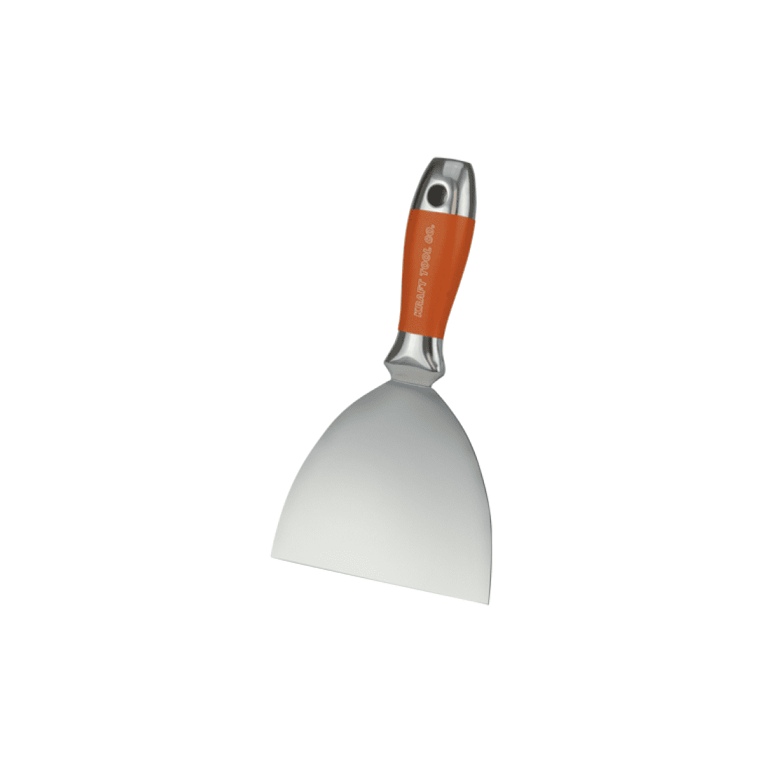 Light as a feather, but strong as an ox! Non-rust stainless steel blade and handle is made for strength and longevity. Use the polished 1-1/2" blade for scraping, painting and other drywall applications. The small blade is perfect for applying putty to fill in nail holes or small patching and repair projects. The end of the handle is flat and strong for nail setting. The rivet-free, contoured handle is comfortable to grasp and prevents fatigue. The handle is covered in a sure grip material making it easier and more comfortable to hold without slipping. The orange handle is easy to spot on a jobsite. A hang hole allows for easy storage.