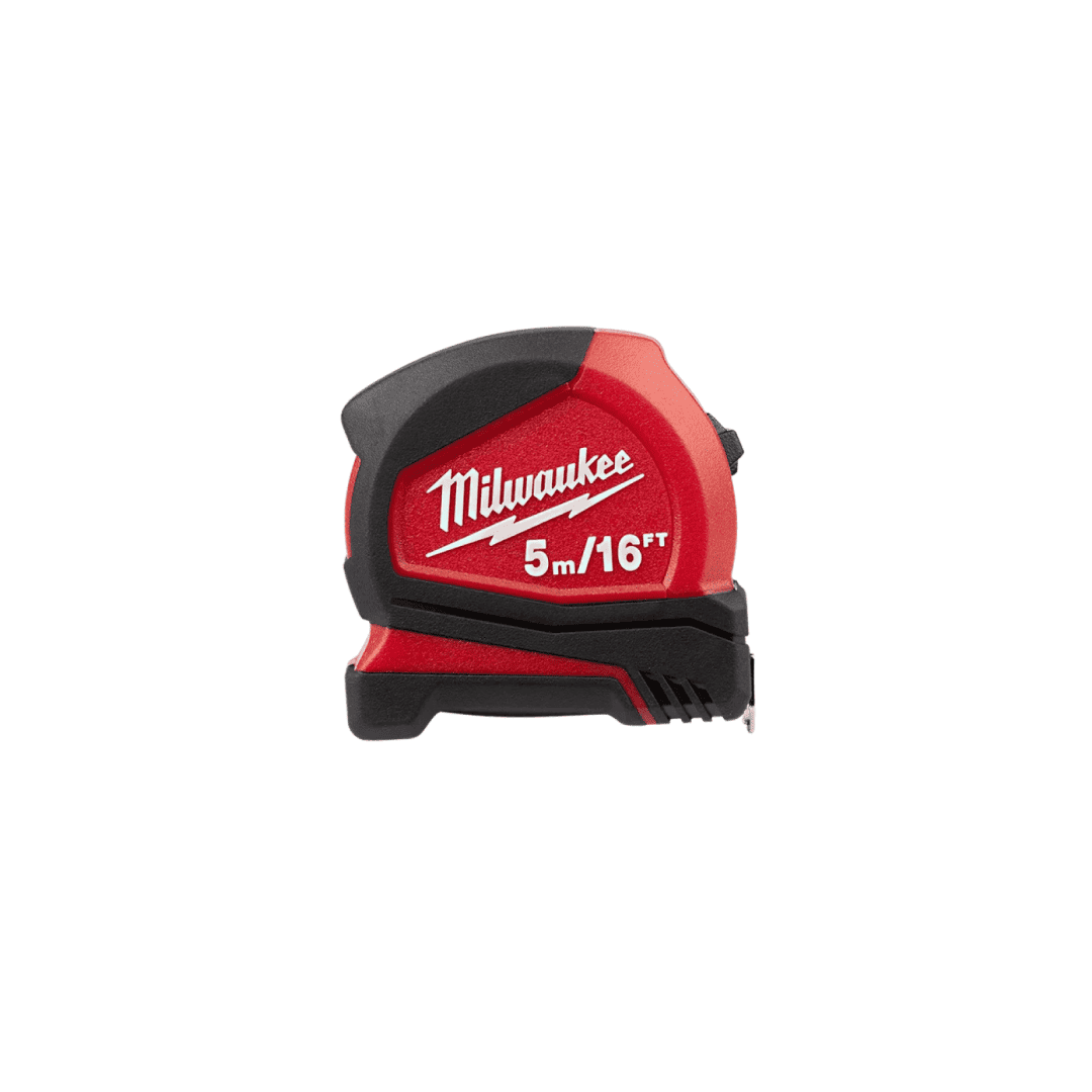 5m/16ft Compact Tape Measure has up to 12' of reach. These tapes are equipped with wear resistant nylon blade protection and an impact-resistant 5-point reinforced frame to withstand the jobsite. An integrated stamped steel belt clip allows you to easily carry the tape measure with you around the jobsite.