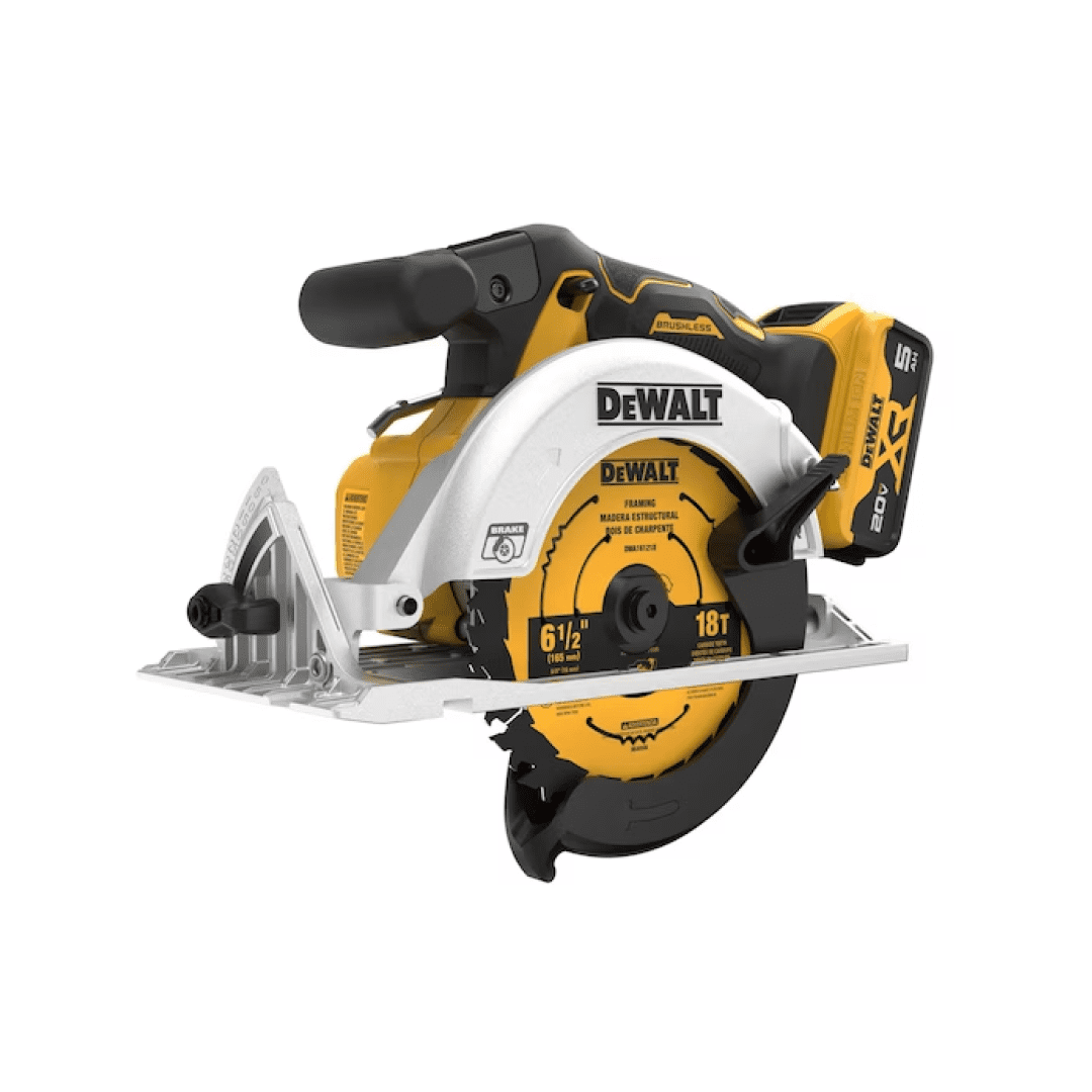 - Includes: DCS565 20V MAX* Brushless Cordless 6-1/2 in Circular Saw, DWA161218 Saw Blade, Blade Change Wrench, Optional Dust Chute, Charger, 20V MAX* Lithium Ion 5.0Ah Battery (DCB205), Kit Bag