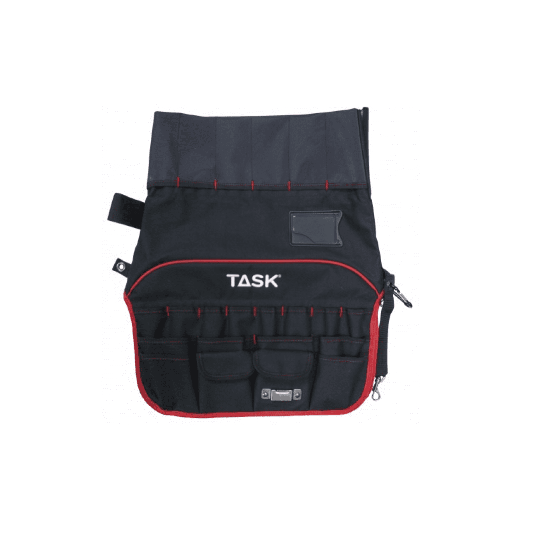 - 12 interior pockets and 53 exterior pockets and loops with smaller slots for driver bits and 2 tape measure clips
