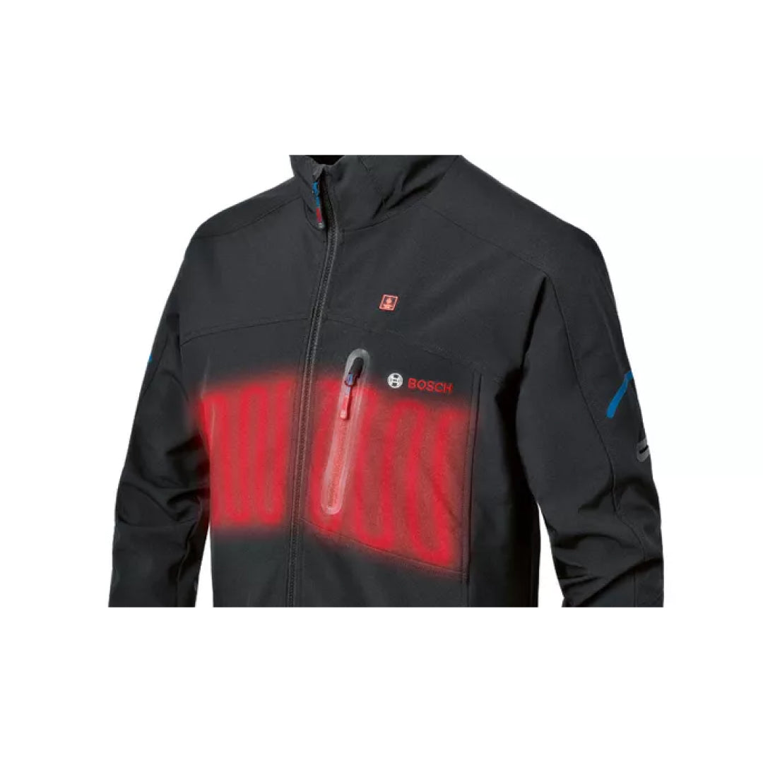 The jacket’s heating pads are powered by the GAA 12V-21 charging adapter (included) and 12 V battery from Bosch or, optionally, by the GAA 18V-48 charging adapter and 18 V battery from Bosch (not included).