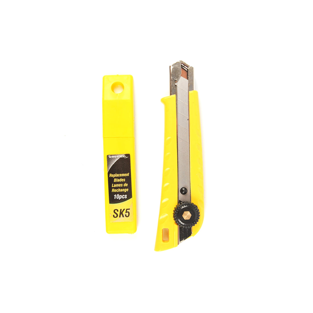 HD Utility Knife 18mm Snap-Off Blade + 10 Blades Yellow