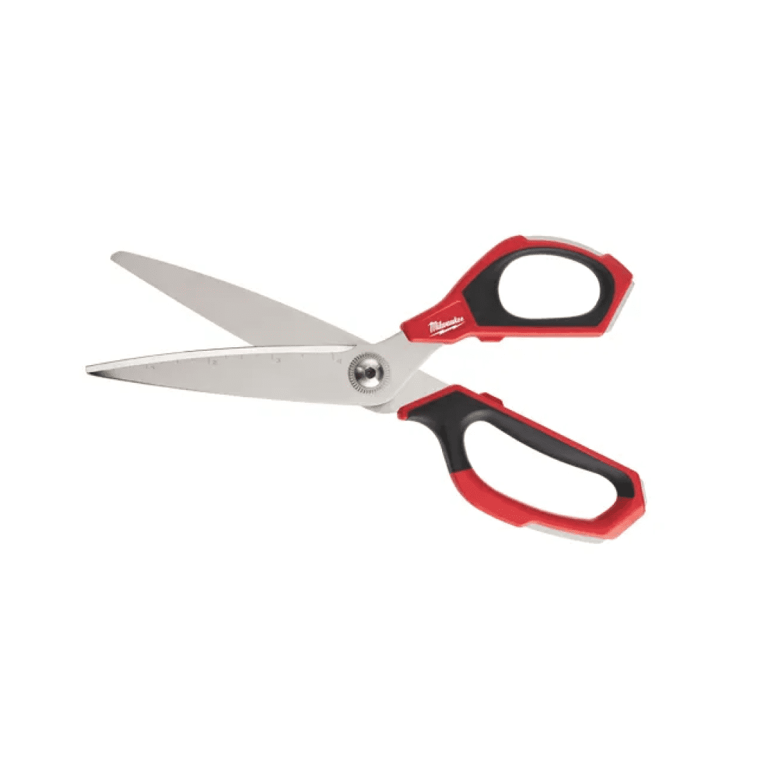 Milwaukee® Jobsite Straight Scissors redefine performance and durability in the scissors category. They feature Iron Carbide cutting edges for maximum durability during tough cuts and all-metal handle loops for protection from drops and handle breakage. Bolt Lock Technology prevents blades from loosening to ensure precision cutting. For added precision, ruler markings are featured on the front of the blades.
