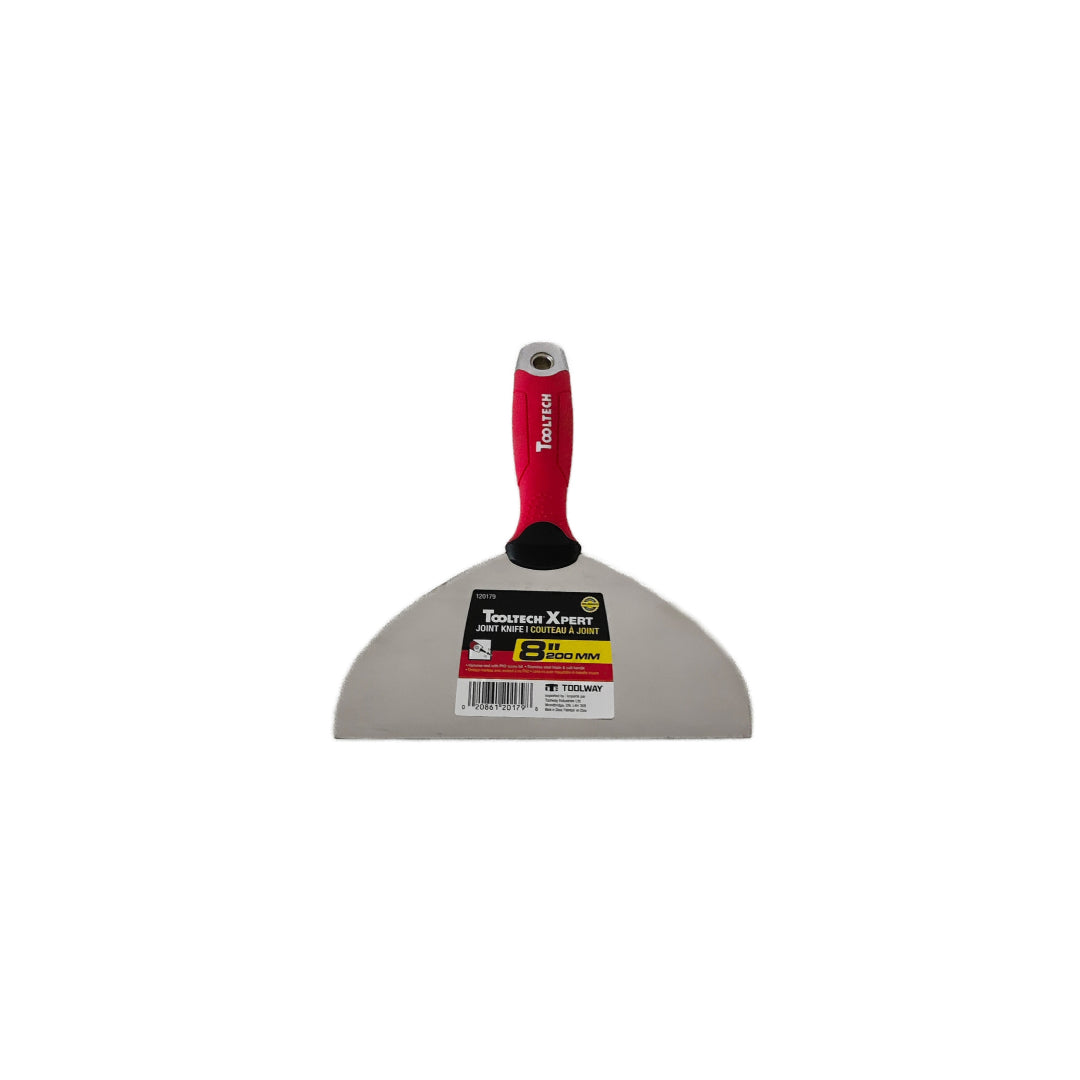 8-Inch Stainless Steel Joint Knife with Soft Grip Handle and Hammer End — Perfect for Drywall, Plaster, and Finishing Jobs. Durable, Flexible Blade for Smooth Application and Built-In Hammer End for Nail Setting.