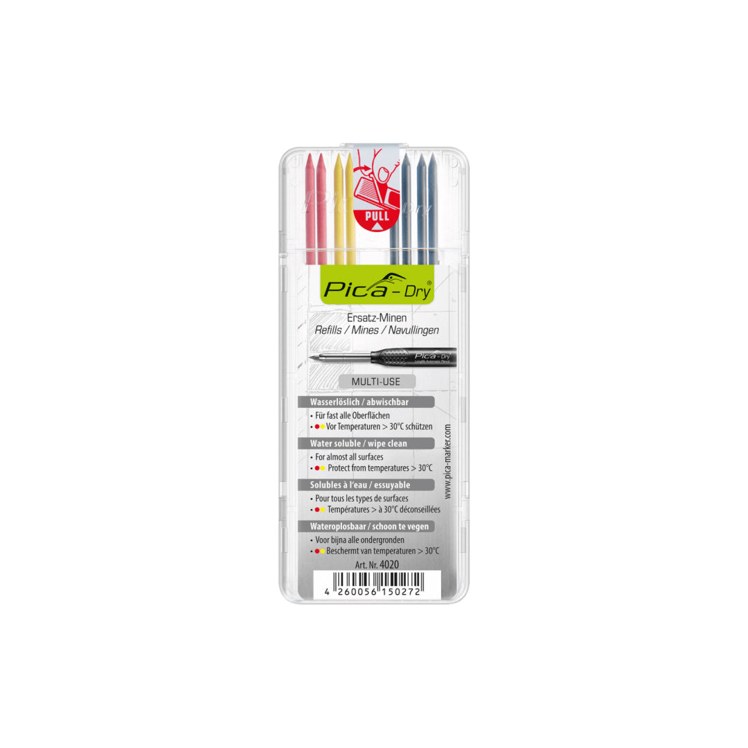 Graphite leads in special hardness H for precise markings. Particularly suitable for working with wood. Cannot be used on glass-smooth, shiny surfaces.