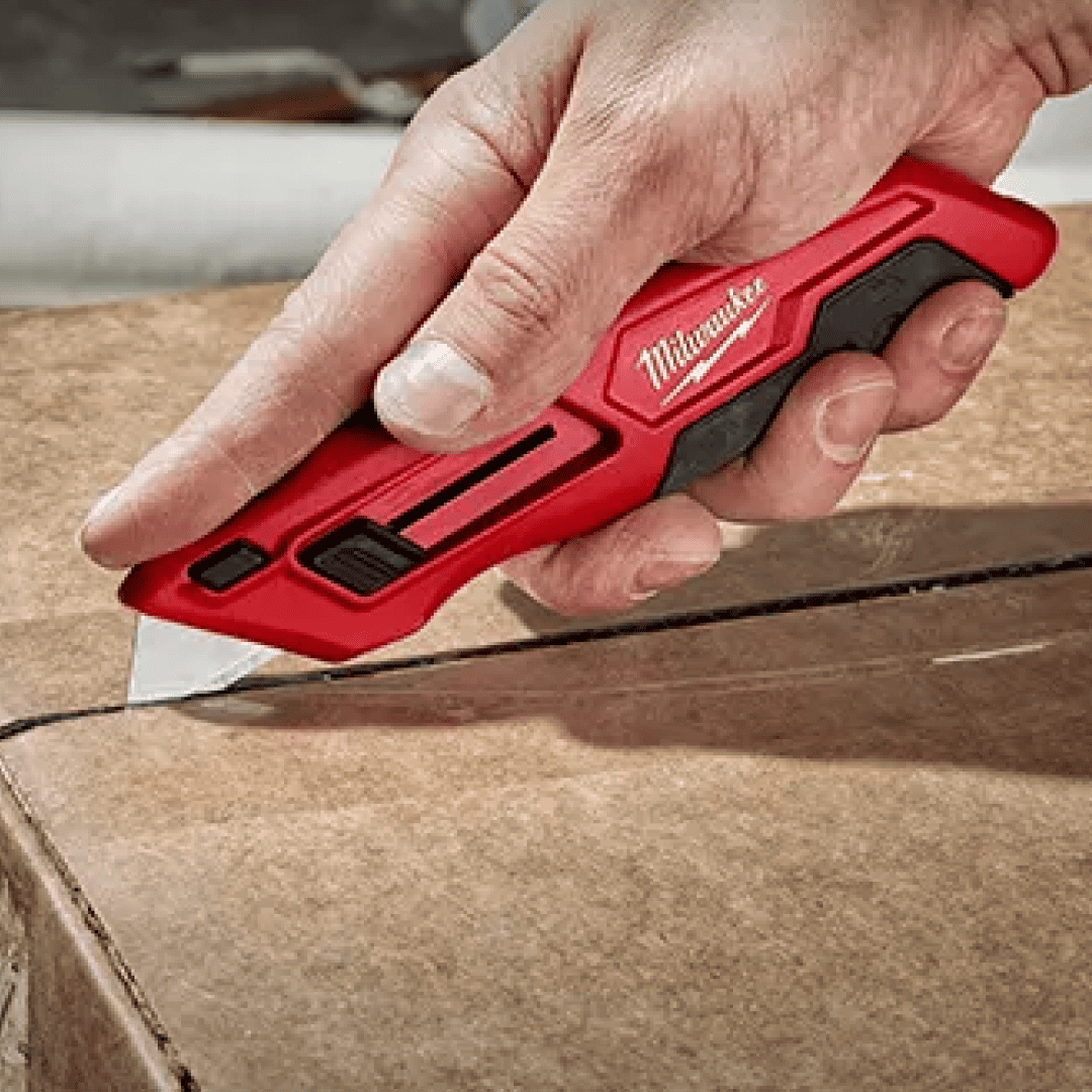 Our Side Slide Utility Knife features a slide button on the side to reduce accidental activation and retraction of the blade giving users maximum control. The MILWAUKEE® sliding pocket knife and box cutter allows you to make quick, tool-free blade changes. The Milwaukee sliding utility knife has a metal body that provides durability while onboard blade storage allows you to store 5 extra blades. The side slide utility knife delivers increased comfort and reduced hand slippage with overmold grips.