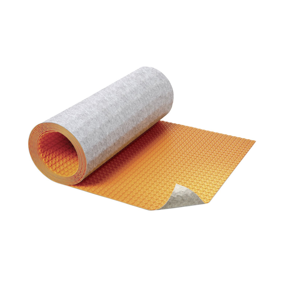 Schluter®-DITRA-HEAT-DUO is an uncoupling and waterproofing membrane with an integrated bonding fleece that provides sound control, as well as a thermal break. Optionally, the system can be customized with floor heating cables to create a warm, luxurious tile floor.