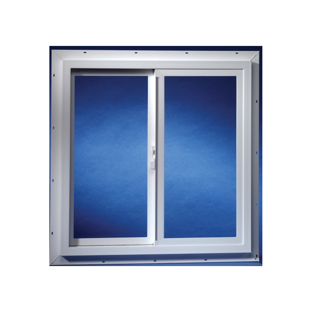 Impact-resistant solid vinyl frame and sash, fully welded. 1/2 in insulated glass. Double paned. Both sash operate and are removable. Fully weeped frame for efficient water removal. Pre-punched nailing fin for added ease of installation. 1 in J-channel sliding return. Fully weather-stripped. True interlocking sash. Hook latch lock for positive sash to sash engagement. Includes full screen.