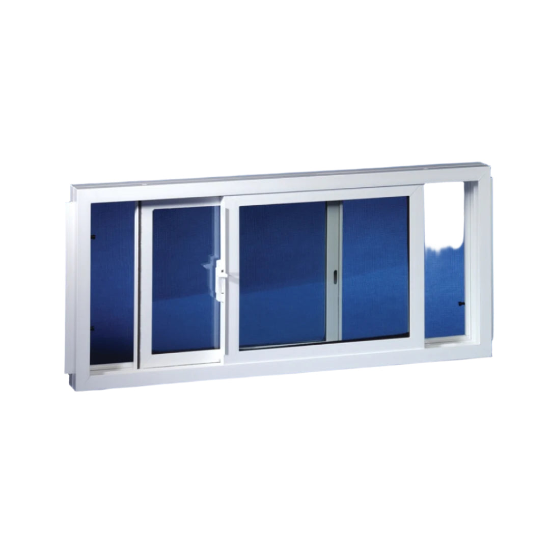 Impact-resistant solid vinyl frame and sash, fully welded. Low-E 1/2 in insulated performance glass, 2.86 R-value, 0.35 U-value. Both sash operate and are removable. Fully weeped frame for efficient water removal. Extruded vinyl masonry fin. Extruded fin on sill for mortar grab. Fully weather-stripped. True interlocking sash. Hook latch lock for positive sash to sash engagement. Includes full screen and installation instructions. 2-1/4 in frame thickness.
