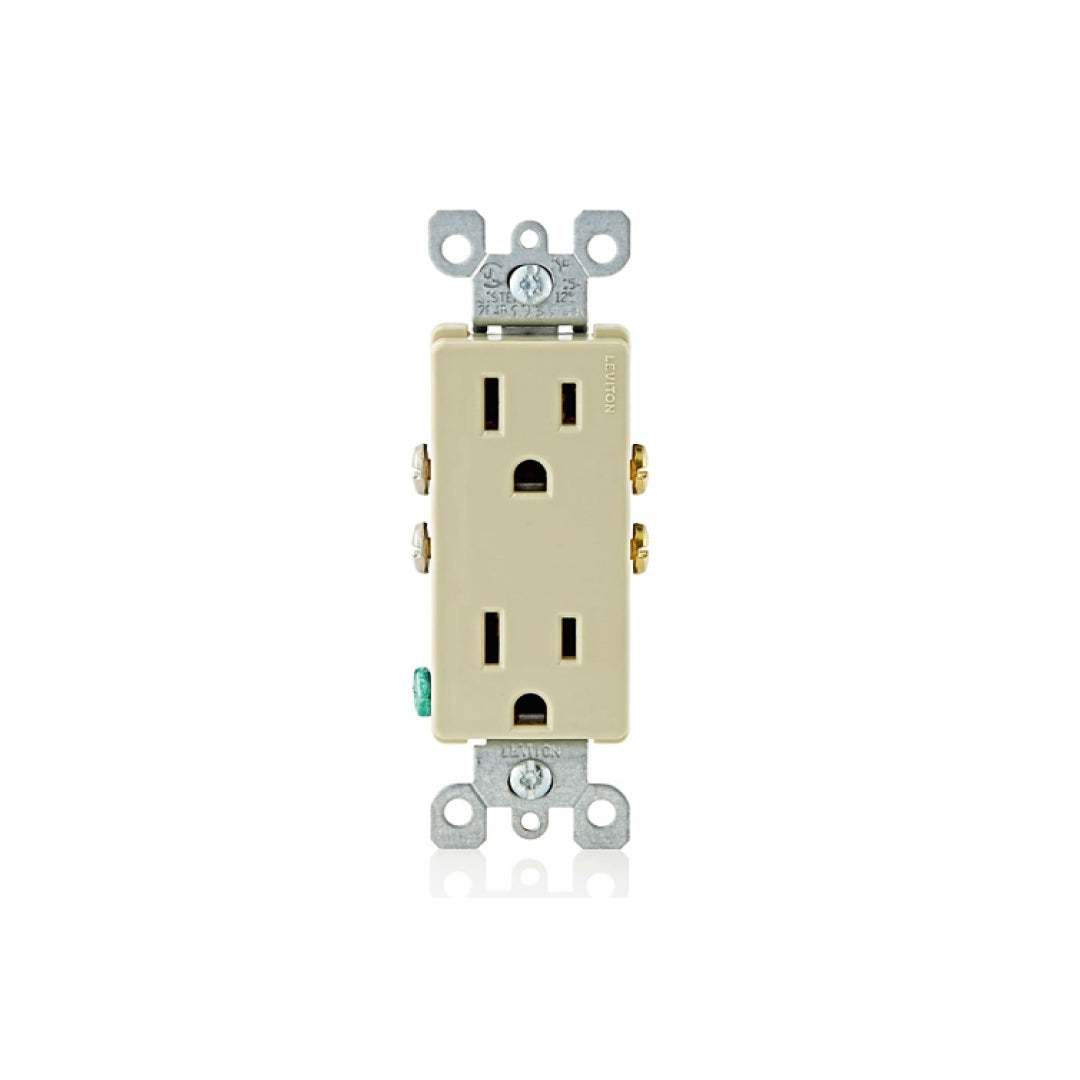 15 Amp Decora Duplex Outlet/Receptacle, Grounding, Ivory