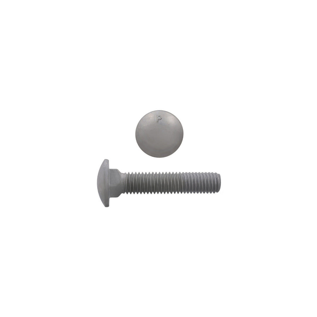 Grade 2 Hot Dipped Galvanized Carriage Bolts are available in partially and fully threaded lengths. They are also referred to as shaker screen bolts. These bolts feature a low-profile head equipped with a square neck, designed to prevent rotation when the nut is either tightened or loosened. They are commonly used in joining wood to wood or wood to metal. They are characterized by their smooth, round head that offers a clean, finished appearance. Galvanized plating enhances the bolt's resistance to corrosion and rust, making it ideal for outdoor or harsh environmental conditions. Grade 2 carriage bolts can handle a minimum tensile strength of 64,000 pounds per square inch (p.s.i.) for sizes up to 5/8-inch, and 55,000 p.s.i. for 3/4-inch diameters. They are distinguished by the absence of radial lines or markings on the head and are manufactured using low carbon steel.