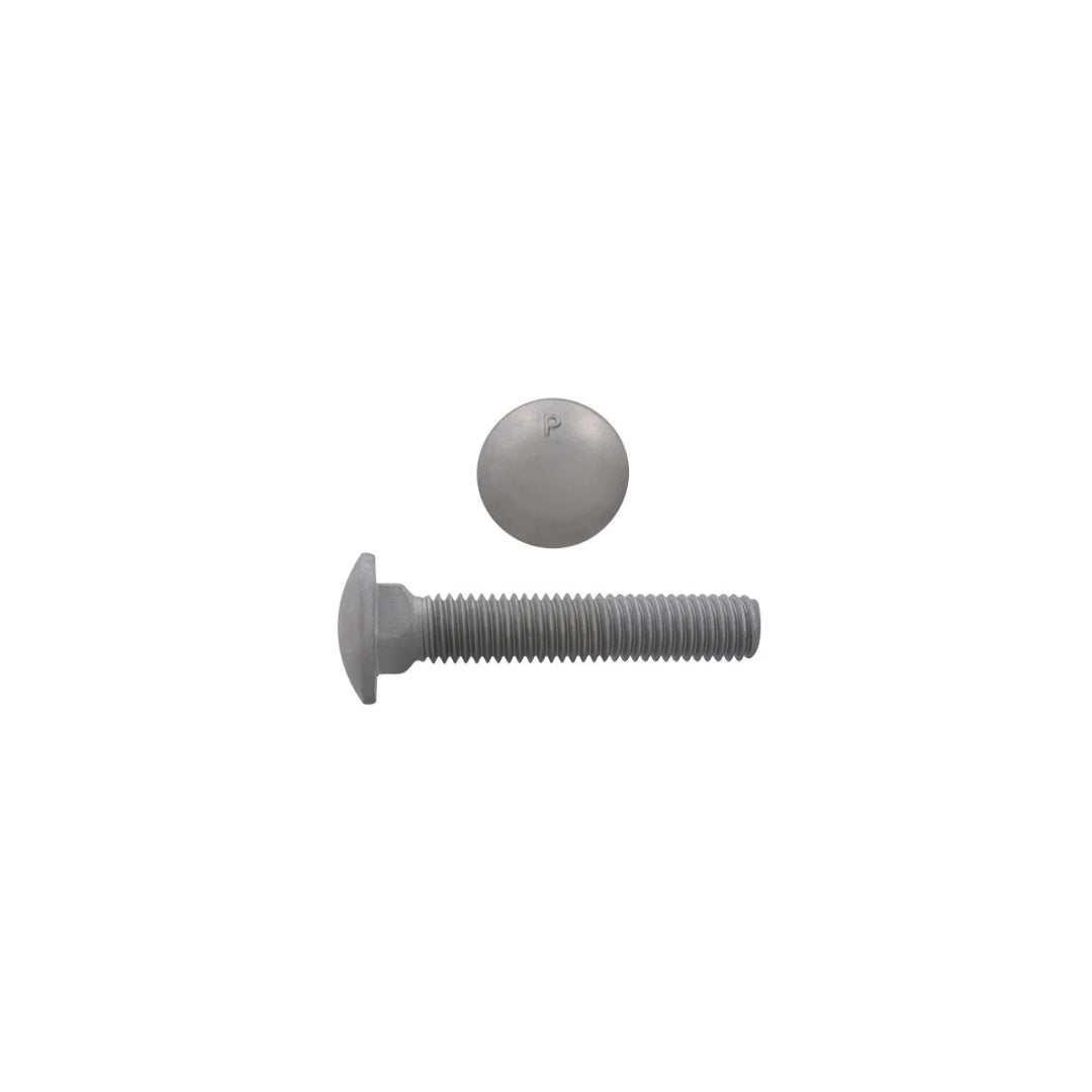 Grade 2 Hot Dipped Galvanized Carriage Bolts are available in partially and fully threaded lengths. They are also referred to as shaker screen bolts. These bolts feature a low-profile head equipped with a square neck, designed to prevent rotation when the nut is either tightened or loosened. They are commonly used in joining wood to wood or wood to metal. They are characterized by their smooth, round head that offers a clean, finished appearance. Galvanized plating enhances the bolt's resistance to corrosion and rust, making it ideal for outdoor or harsh environmental conditions. Grade 2 carriage bolts can handle a minimum tensile strength of 64,000 pounds per square inch (p.s.i.) for sizes up to 5/8-inch, and 55,000 p.s.i. for 3/4-inch diameters. They are distinguished by the absence of radial lines or markings on the head and are manufactured using low carbon steel.