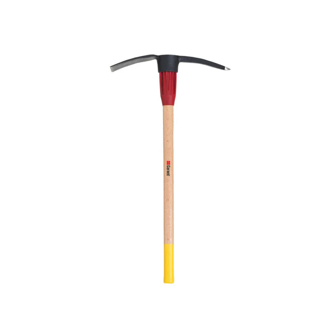 Dig, turn over and remove dirt in hard ground or clay thanks to the Garant Pro Series professional pick/mattock. This tool has a 5 lb forged and tempered steel head for increased strength and rigidity. Its 36 inch (91.4 cm) varnished hickory handle and its texturized anti-slip grip allows for sure and safe manipulation. This pick/mattock of superior quality was especially made for professionals looking for a robust, reliable and safe tool for demanding work.