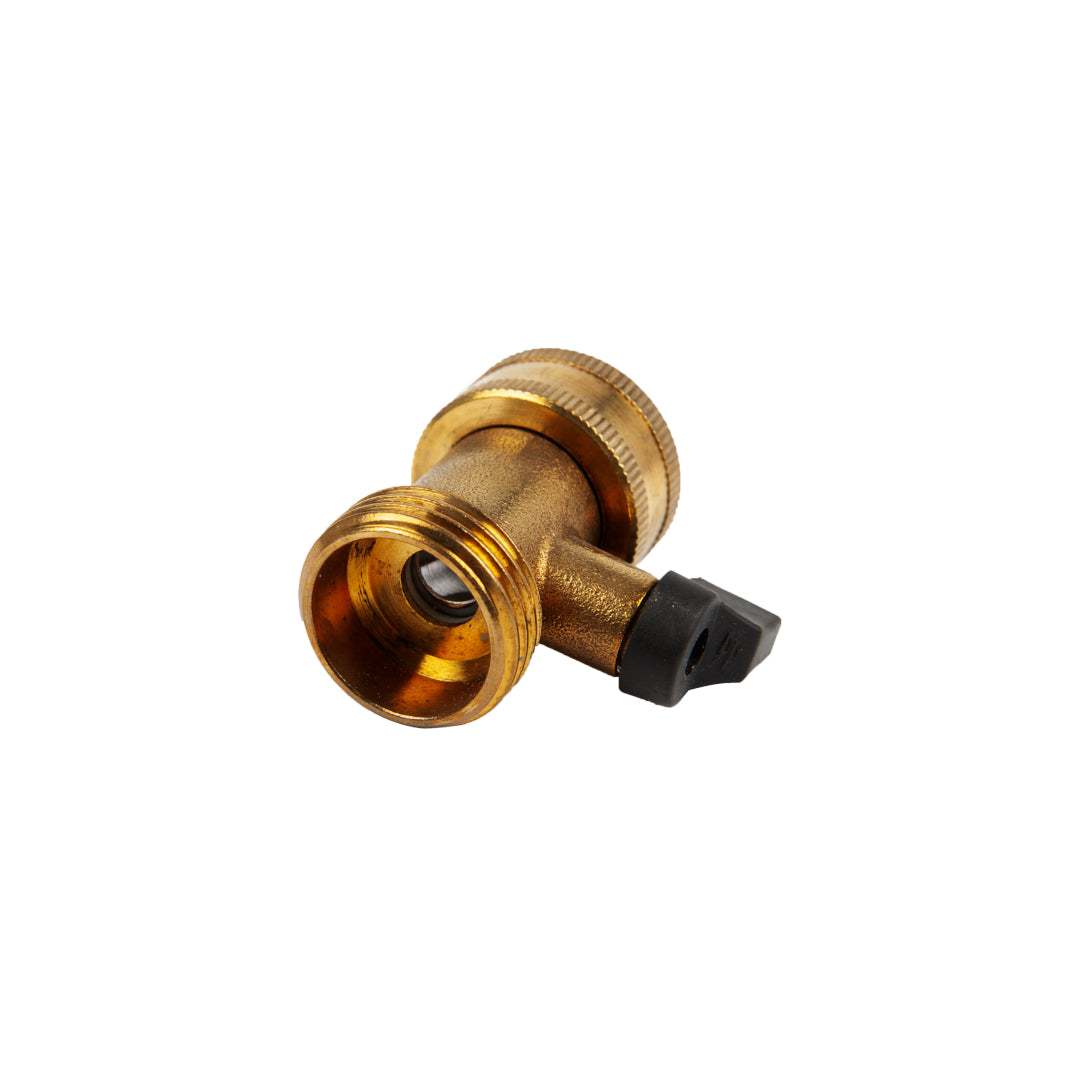 - Brass garden hose shut-off valve connector .