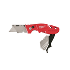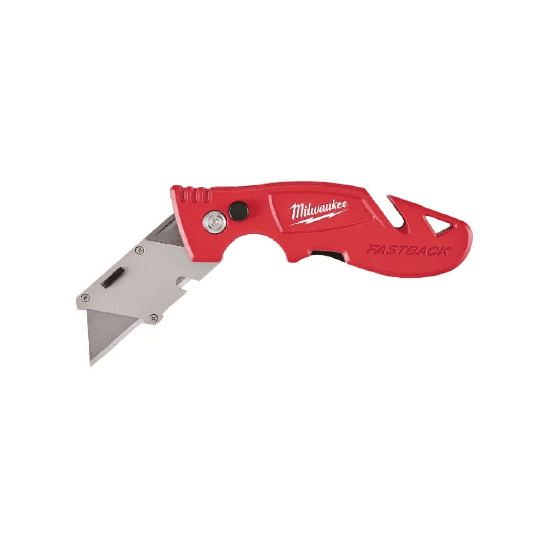 The Milwaukee® FASTBACK™ Folding Utility Knife features Press and Flip for one-handed opening. The MILWAUKEE® utility knife allows you to make quick, tool-free blade changes for maximum jobsite efficiency The utility knife has an all metal body, an integrated gut hook and wire stripper for increased versatility. The folding utility knife has a metal extension that prevents accidental blade removal and a wire belt clip.