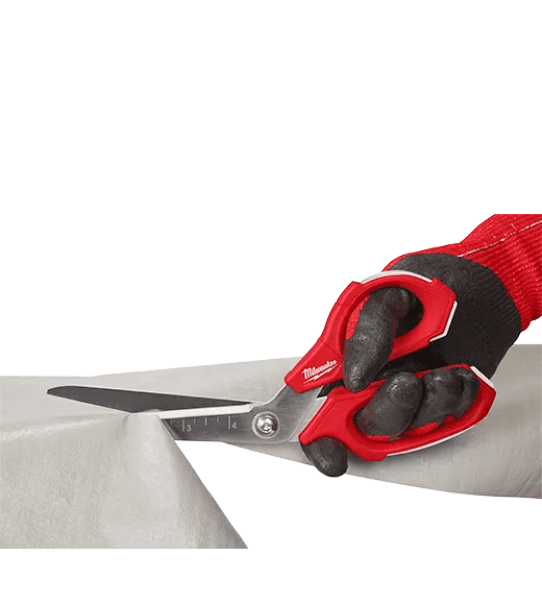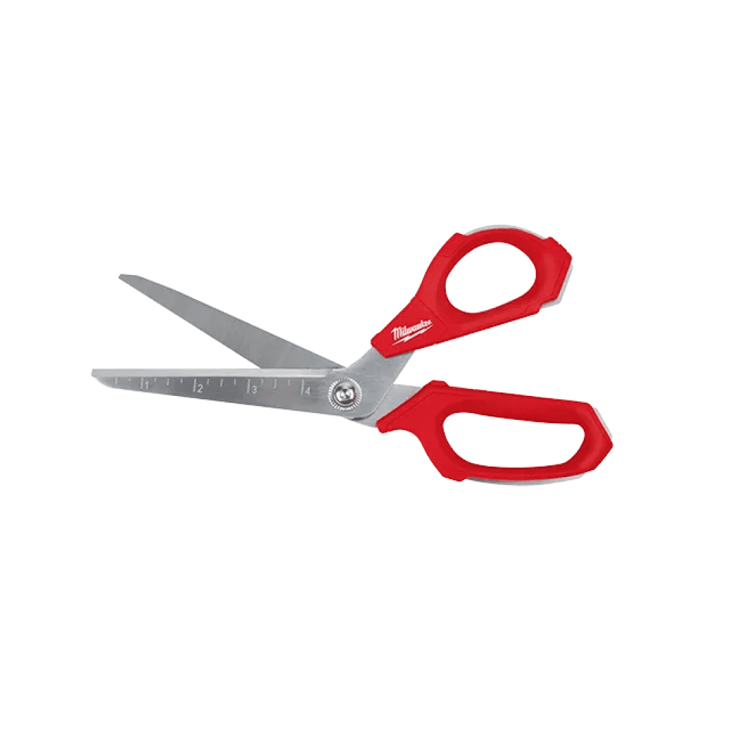 Jobsite Offset Scissors feature all-metal handles for added durability and up to 10X Longer Life. The construction scissors include a serrated cutting edge for increased force and grip. MILWAUKEE® Bolt Lock Technology prevents blades from loosening to ensure precision cutting. For added precision, ruler markings are on the front of the blades. With a limited lifetime warranty.