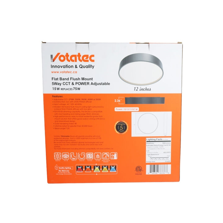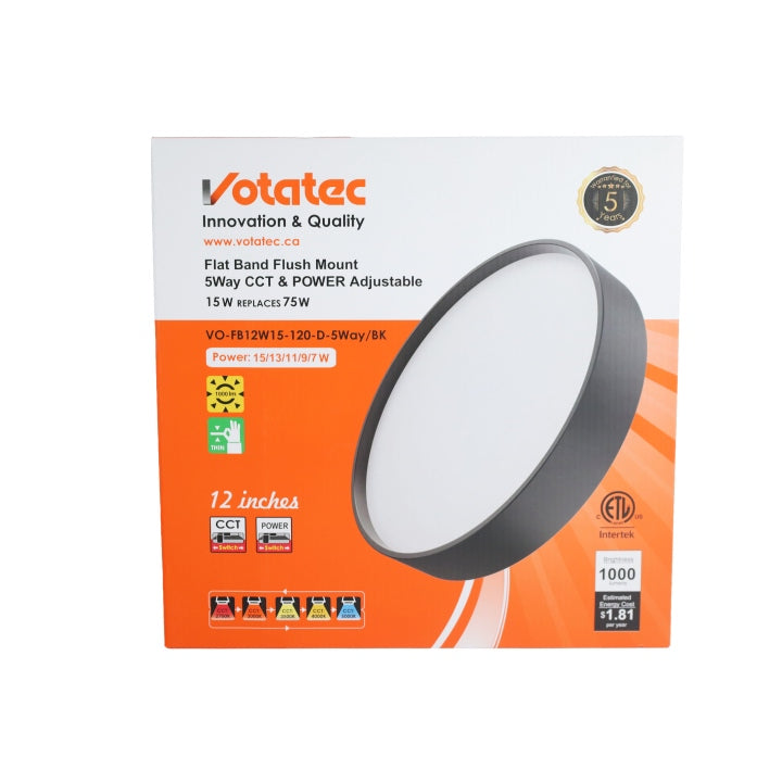LED Ceiling Flat Band Flush Mount 5way CCT & Power adjustable Black