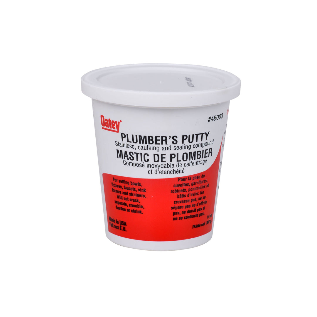 Oatey® Plumber's putty is a stainless; long-lasting; easy-to-use fixture setting compound for frames; faucets and basket strainers. It provides a waterproof seal between two rigid surfaces that remains flexible and will not harden; shrink; crack or crumble."