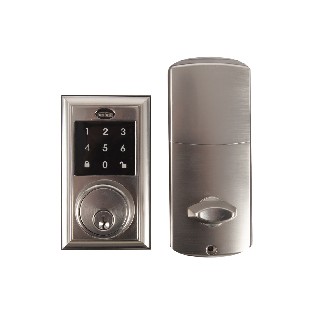 The electronic deadbolt from Tough Guard has been designed with maximum security in mind. Manufactured with the toughest materials for added strength, it is also equipped with "Bump" protection to prevent break-ins from lock bumping and features a failed attempts alarm to discourage tampering. This modern looking lock with its LED backlit touch screen keypad will fit all standard door preparations, comes in three finishes and allows for multiple users with 50 programmable user codes. Requires installation and 4 AA Batteries, (not included). this lock can also be adjusted for right or left hand door applications and comes with 2 keys.