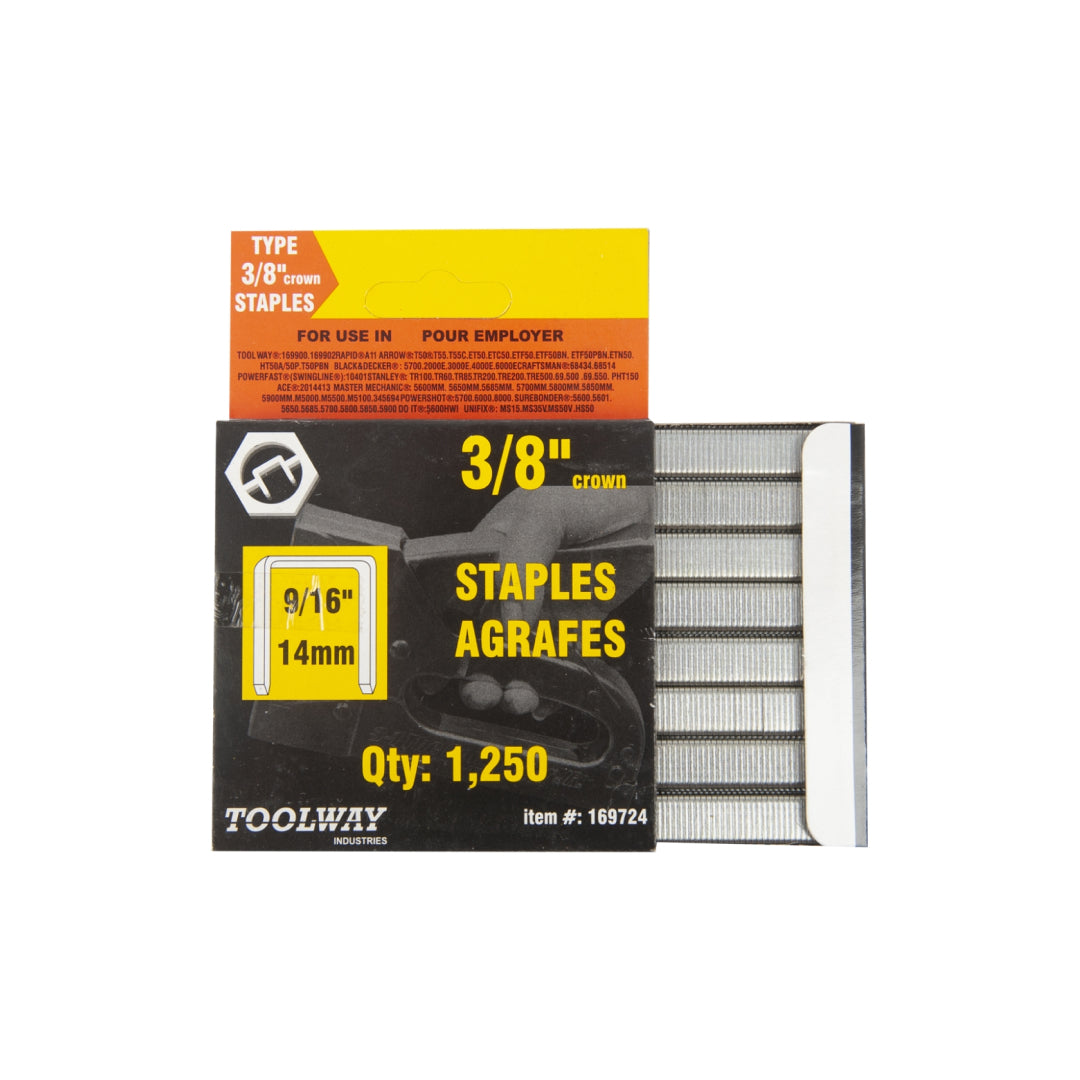 Toolway's line of staples are designed to meet and exceed all your stapling needs, yet are also priced to be easy on your pocket book. Manufactured to fit Toolway's line-up of Staple Guns and Hammer Tackers, they will also fit the industry’s most popular models. They can be used on roofing, insulation, carpet and upholstery installation or any other project where staples or fasteners are required. Will Fit the following make/models; RAPID: A11 ARROW:T50, T55, T55C, ET50, ETC50,ETF50, ETF50BN, ETF50PBN, ETN50,HT50A/50P, T50PBN BLACK and DECKER: 5700, 2000E, 3000E,4000E, 6000E CRAFTSMAN: 68434, 68514 POWERFAST(SWINGLINE): 10401 STANLEY: TR100, TR60, TR85, TR200,TRE200, TRE500, 69.500, 69.550 PHT150 ACE: 2014413 MASTER MECHANIC: 5600MM, 5650MM,5685MM, 700MM, 5800MM, 5850MM,5900MM, M5000, M5500, M5100, 345694 POWERSHOT: 5700, 6000, 8000 SUREBONDER: 5600, 5601, 5650, 5685,5700, 5800, 5850, 5900 DO IT: 5600HWI UNIFIX: MS15, S35V, MS50V, HS50.