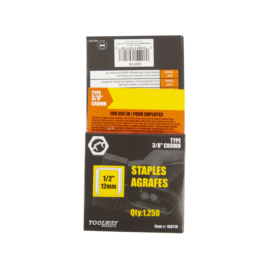 Toolway's line of staples are designed to meet and exceed all your stapling needs, yet are also priced to be easy on your pocket book. Manufactured to fit Toolway's line-up of Staple Guns and Hammer Tackers, they will also fit the industry’s most popular models. They can be used on roofing, insulation, carpet and upholstery installation or any other project where staples or fasteners are required. Will Fit the following make/models; RAPID: A11 ARROW:T50, T55, T55C, ET50, ETC50,ETF50, ETF50BN, ETF50PBN, ETN50,HT50A/50P, T50PBN BLACK and DECKER: 5700, 2000E, 3000E,4000E, 6000E CRAFTSMAN: 68434, 68514 POWERFAST(SWINGLINE): 10401 STANLEY: TR100, TR60, TR85, TR200,TRE200, TRE500, 69.500, 69.550 PHT150 ACE: 2014413 MASTER MECHANIC: 5600MM, 5650MM,5685MM, 700MM, 5800MM, 5850MM,5900MM, M5000, M5500, M5100, 345694 POWERSHOT: 5700, 6000, 8000 SUREBONDER: 5600, 5601, 5650, 5685,5700, 5800, 5850, 5900 DO IT: 5600HWI UNIFIX: MS15, S35V, MS50V, HS50.